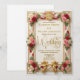 Set the tone for your formal spring union with this ornate, classically inspired design featuring garden roses, a regal crest, and warm metallic accents.This design features a symmetrical composition centered around a custom oval monogram crest. Lush, intricate borders of blush pink and rose red roses mix with sage green foliage to frame your wedding details. The artwork is accented by printed faux gold foil flourishes and vintage-style cherub illustrations at the base, all set against a soft, creamy ivory background. The typography blends elegant serif headers with flowing calligraphy script for names.This is a flat printed image with a Faux Gold Foil effect, not actual raised material.
