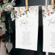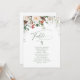 Elegant watercolor flowers design of white roses, pine cones, berries and eucalyptus greenery, with modern stylish script. Festive palettes of red, sage green, and white, Great personalized table seating card for holiday Christmas wedding, country garden wedding, and boho floral wedding in winter.
