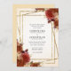 Une élégante invitation de mariage avec de beaux roses en terre cuite foncée et en ivoire, accentués d'un cadre de parties scintillant en faux or. Cette invitation est parfaite pour un mariage de automne.