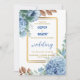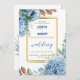 son floral bleu clair caractéristique, feuilles marron brûlé, cadres dorés avec écriture manuscrite