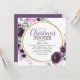 Fleurs aquarelles élégantes de violets et de roses, invitation de Noël. L'invitation comprend également un modèle d'invitation à la diner de Thanksgiving facile à personnaliser, les styles, tailles et couleurs de police peuvent être modifiés en cliquant sur le lien de personnalisation supplémentaire après la personnalisation.