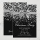 Moderne Invitation de fête de Noël / entreprise / dîner avec lumières scintillantes Glam Minuit Argent et un nœud ruban.