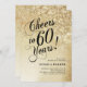 Elégante invitation à la fête du 60e anniversaire. Design élégant en parties scintillant d'or et de noir. Caractéristiques police de script de typographie et confetti. Parfait pour une célébration anniversaire féminine élégante. Personnalisez avec vos propres détails. Message-moi si vous avez besoin d'âge personnalisé. Invitations Zazzle imprimées ou téléchargement instantané modèle imprimable numérique.