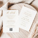 Invitations de mariage élégantes, tout-en-un, avec vos noms et informations de cérémonie de mariage sur le devant en lettres d'or avec un arrière - plan blanc. Un script de calligraphie moderne complète l'apparence de ce faire-part de mariage doré chic. Personnalisez le dos des invitations de mariage de calligraphie avec des détails mariages tels que les informations de réception, les hébergements de l'hôtel, les instructions RSVP et le site Web du mariage. Ajoutez le lien de votre site Web mariage souhaité au modèle QR Code fourni afin que vos invités puissent facilement RSVP en ligne et voir des informations supplémentaires sur le mariage. Ce faire-part de mariage de code QR or est parfait pour les mariages formels et décontractés de toute saison.