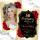 Invitation Elégant Gold Black Red Photo 50e anniversaire