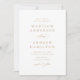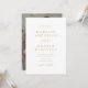 Elégantes invitations de mariage avec vos noms et détails mariages en lettres d'or avec un arrière - plan blanc. Un script de calligraphie moderne complète l'apparence de ce faire-part de mariage doré chic. L'invitation inverse pour afficher votre photo fiançailles préférée. Ce faire-part de mariage photo simple est parfait pour les mariages formels et décontractés de toute saison.