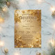 The design features a rich, shimmering gold background that creates a captivating, radiant glow. Delicate, detailed sparkling gold and champagne snowflakes float across the design, giving it a luxurious, glitter-like texture and a beautiful winter theme aesthetic. This invitation expertly blends classic holiday charm with a modern touch of glamour and luxury.