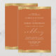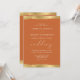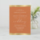 Cette faire-part de mariage branchée présente une conception de bord déchirée en faux feuille d'or aux bords supérieur et inférieur sur un arrière - plan orange brûlé. Le mot "mariage" apparaît dans le script calligraphique. Customisez le texte blanc avec les noms de la mariée et du marié et les détails du mariage. Le dessin de bord doré est répété à l'envers.