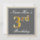 Invitation Elégant, gris, Faux Gold 3e anniversaire; Nom pers