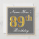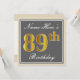 Cette conception simple et élégante d’invitation à la fête d’anniversaire comporte un message personnalisé comme "Name-Here’s 89th Birthday" (avec le "89th" qui a un style de teinture faux/imitation or) dans un espace carré gris avec une bordure simple. Le nom est dans un texte élégant en forme de script blanc, et peut être personnalisé. Le dossier contient des détails d'invitation personnalisables. Une invitation comme celle-ci à la fête d'anniversaire pourrait peut-être être utilisée pour inviter des gens à une fête d'anniversaire organisée pour quelqu'un qui fête son quatre-vingt-neuvième anniversaire. [~Z0000230]