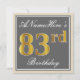 Invitation Élégant, Gris, Or Faux 83e Anniversaire + Nom