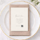 The front showcases a clean, modern menu layout with graceful typography, while the back includes a heartfelt Thank You message and optional QR code for sharing wedding photos or special memories. Designed to feel airy, romantic, and effortlessly luxurious, this menu complements classic, garden, editorial, and fine-art wedding styles.