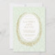 Cette faire-part de mariage verte est parfaite pour une mariée moderne qui apprécie un style vintage français. Le design comprend un cadre de couronne de laurier antique autour de vos détails mariages. Le design est sur un arrière - plan damassé vert clair.