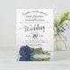 Cette magnifique faire-part de mariage présente un design floral moderne avec un seul rose couleur gris-bleu acier à longue tige, allongé sur son côté, réfléchissant dans un bassin avec vagues et ondulations. Le design est simple, élégant, romantique et sophistiqué, avec la calligraphie de script en dentelle et le contenu entièrement personnalisable.