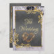 This elegant wedding announcement features a grey center on a black and white marble background, framed with gold roses and leaves, embellished with a gold scroll heart. Designed to coordinate with the "Elegant Marble, Gold Leaves Frame & Scroll Heart" Wedding Collection. To change details, click «Personalize». To move the text or change the text size, font, or color click «Click to customize further»
