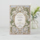 Ce luxueux faire-part de mariage baroque présente un cadre doré opulent entrelacé de délicats nénuphars blancs et d'un feuillage vert luxuriant, dressé contre un arrière - plan damassé bleu doux. Les détails complexes et les ornements tourbillonnants de style rococo créent une esthétique royale et intemporelle, parfaite pour un mariage sophistiqué. La typographie soignée renforce l'élégance classique du design, ce qui en fait un choix idéal pour les couples à la recherche d'un faire-part de mariage raffiné d'inspiration vintage. Le dos de la carte poursuit le thème royal avec un motif élégant et subtil pour un look coordonné et poli.