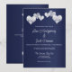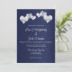 Elégant Faire-part de mariage blanc de marine conçu avec des coeurs blancs doux sur un arrière - plan de couleur marine. Le texte de l'invitation initiale comprend : Avec leurs familles, les noms complets de l'épouse et de la salle, Demandez l'honneur de votre présence à leur Mariage, La date et l'heure, Le lieu et l'adresse du Mariage, Réception à suivre. Le texte latéral inverse comprend : RSVP et les coordonnées. Pour personnaliser, insérez simplement votre texte dans notre modèle facile, en remplaçant l'exemple de libellé.