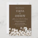 Cette élégante faire-part de mariage florale brune et blanche présente des fleurs d'automne et d'hiver. arrière - plan Brown avec texte blanc et fleurs de mariage blanches. Arrière - plan de fleurs blanches plus grandes est facultatif. Tout le texte, y compris les noms, peut être modifié.
