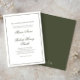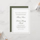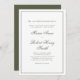 Présentez votre mariage avec une élégance intemporelle en utilisant cette élégante faire-part de mariage verte. Doté d'un script de calligraphie classique et d'une typographie traditionnelle formelle, le design dégage une élégance simpliste avec un libellé formel. L'esthétique simple et minimaliste est rehaussée par une bordure minimale et un dos monogramme minimaliste, avec un monogramme initial et un ampersan pour une touche personnalisée. Doux, romantiques et sophistiqués, cette invitation donne le ton de votre journée parfaite avec un style sobre mais raffiné.