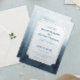 Une élégante faire-part de mariage d'aquarelle bleue qui s'avère idéale à tout moment de l'année. Un design moderne et classe.