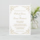 Cette élégante faire-part de mariage formelle d'inspiration vintage présente le texte en écriture dorée et les polices serif, encadrées par un délicat motif de vigne dorée vintage. Le cadre est répété à l'envers.