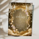 Lustre Elégant en cristaux d'or : Un design de faire-part de mariage exquis et luxueux, avec des motifs floraux, intimement liés aux accents d'or, danse gracieusement à travers la carte. Ces éléments floraux se mêlent aux lumières scintillantes, invitant à une majestueuse célébration de l'amour et de l'union. L'invitation promet une expérience inoubliable, où les clients seront plongés dans l'opulence d'une affaire royale, entourés par la splendeur d'un mariage somptueux et enchanteur.