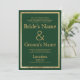 Elégant design moderne vert foncé et or minimaliste faire-part de mariage.Une invitation simple de luxe avec un arrière - plan personnalisable.
