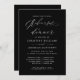 Invitation vos invités de répétition mariage dans le style avec cette faire-part de mariage minimaliste en noir et blanc personnalisé avec un simple arrière - plan noir avec élégante typographie de script blanc pour vous de personnaliser avec vos détails mariages. Meilleurs voeux pour votre mariage et mariage ! Conçu par Susan Coffey.