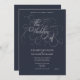 Invitation Elégant Mariage de script bleu et argent de la mar