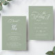 Elégant faire-part de mariage vert sauge avec calligraphie tourbillonnant romantique avec détails sur le dos. Parfait pour toute saison. Pour une personnalisation plus avancée de cette conception, cliquez sur le BOUTON OUTIL DESIGN BLEU ci-dessus !