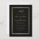 Invitation vos invités mariages dans le style avec cette élégante invitation traditionnelle en monogramme noir et or. Le design chic comprend des initiales monographiques classiques en script de calligraphie faux or ainsi que tous les détails mariages pour personnaliser bordé d'un cadre brillant en faux or sur un simple arrière - plan noir. Meilleurs voeux pour votre mariage et mariage ! Conçu par Susan Coffey.