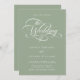 Elégante faire-part de mariage verte sauge avec calligraphie tourbillonnant romantique avec texte facultatif sur le dos. Parfait pour toute saison. Pour une personnalisation plus avancée de cette conception, cliquez sur le BOUTON OUTIL DESIGN BLEU ci-dessus !