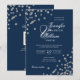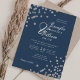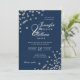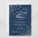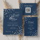 Invitation Élégant Mariage de script Silver Confetti QR Navy