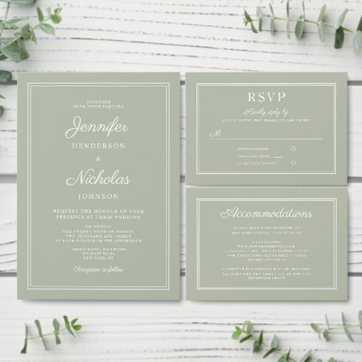 Élégant Faire-part de mariage Moderne Sage Green Script.