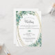 Invitations de mariage botanique à l'aquarelle moderne et élégante avec la verdure d'eucalyptus, cadre ovale de parties scintillant d'or imitation et texte gris fusain. Contactez le concepteur via Zazzle Conversation ou makeitaboutyoustore@gmail.com si vous souhaitez modifier ce design, sur un autre produit ou des éléments de coordination. Contactez le concepteur via Zazzle Conversation ou makeitaboutyoustore@gmail.com si vous souhaitez modifier ce design, sur un autre produit ou si vous souhaitez coordonner des éléments.