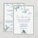 Il s'agit d'une faire-part de mariage illustrée en blanc, bleu et vert élégant avec orchidées et fleurs vertes. L'inverse inclut les détails de cérémonie et de réception avec des oeuvres d'art complétant. Message MineByDesign pour l'aide sur les commandes personnalisées.