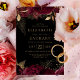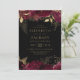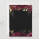 Un design botanique élégant avec des bordures florales bordeaux en haut et en bas, paré de faux feuille d'or et de feuilles de parties scintillant, encadrant le texte classique de couleur or sur un arrière - plan sombre. Un motif floral assorti apparaît au verso de la carte.