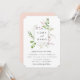 Cadre carré botanique fleur sauvage élégant, faire-part de mariage. Feuilles botaniques et branches vertes délicats et aérés avec des fleurs sauvages mauves et roses. Le dos de la carte est de couleur rose pétale solide.