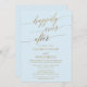 Cette élégante carte de réception de mariage en calligraphie dorée et bleue est parfaite pour une fête après un mariage intime à l'automne. Le design neutre présente une carte minimaliste ornée d'une typographie romantique et fantaisiste en faux doré. Les cartes de réponse sont vendues séparément.