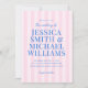 Créez vos propres invitations de mariage personnalisées avec typographie moderne en couleur bleue avec arrière - plan motif rose rayé