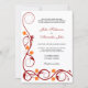 © Designs socialites. Elégant tourbillon rouge et orange, une belle invitation à la mariage de automne. Choisissez parmi plusieurs types de papier d'invitation différents. Vous avez besoin d'aide pour personnaliser ? N'hésitez pas à me contacter pour connaître vos besoins.