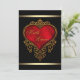 Coeur satin rouge riche élégant rouge, noir et or faire-part de mariage.