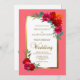 Invitation Élégant Mariage rouge rose or Floral