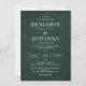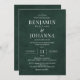 Invitation de mariage classique et élégante avec un arrière - plan d'aquarelle vert forêt et des lettres blanches idéales pour un événement en plein air. Conception uniquement textuelle avec un libellé traditionnel. Options de papier imprimé numérique ou physique. Personnalisez-le avec les noms de M. et Mme, l'emplacement du lieu, le registre, les informations RSVP et tous les détails que vous devez inclure. Produits de suite correspondants disponibles.