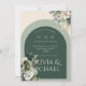 Des éléments floraux verts élégants mettent en valeur cette jolie typographie sur un faire-part de mariage arrière - plan abstrait vert sauge et crème. Le vert Sage vient compléter la verdure des bouquets fleuris. Tout simplement magnifique.