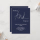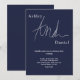 Cette élégante faire-part de mariage bleu marine est parfaite pour un mariage moderne. le design simple comprend une élégante calligraphie blanche sur un arrière - plan bleu.