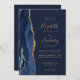 Invitation Elégant Marine Blue Gold Agate QR Code Mariage
