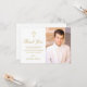 Envoyez un carte de remerciements photo personnalisé simple mais élégant à la famille et aux amis pour avoir assisté à votre première communion sainte. Cette conception comporte une photo sur la droite pour facilement changer à votre propre et à gauche est une simple fausse croix chrétienne d'or avec votre message de remerciement dans le style classique faux script or. Personnalisez le message de remerciement avec votre propre utilisation ou en l'état. Le dos de la carte a une fausse croix d'or sur blanc. Celui-ci était une joie de concevoir. J'espère que vous apprécierez ! Conçu par Susan Coffey.