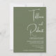 Annoncez votre grande journée avec le Faire-part de mariage minimaliste élégant Sage Green. Cette invitation sophistiquée présente un arrière - plan vert sauge apaisant avec un texte blanc raffiné, mettant en évidence les détails mariages essentiels sur le devant. Le dos affiche élégamment les initiales du couple et la date mariage pour une touche personnelle et moderne. Idéale pour les mariages minimalistes, boho ou d'inspiration nature, cette invitation allie élégance et simplicité, donnant le ton d'une fête inoubliable.
