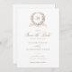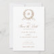 Élégant monogramme de couronne de chêne d'Olive Enregistrer le Faire-part de mariage de date. Faire-part de mariage traditionnelle. Olive Leaf Mariage Monogram Crest Enregistrer la carte de date. Bronze vintage Or Botanique Crest Enregistrer la date Invitation